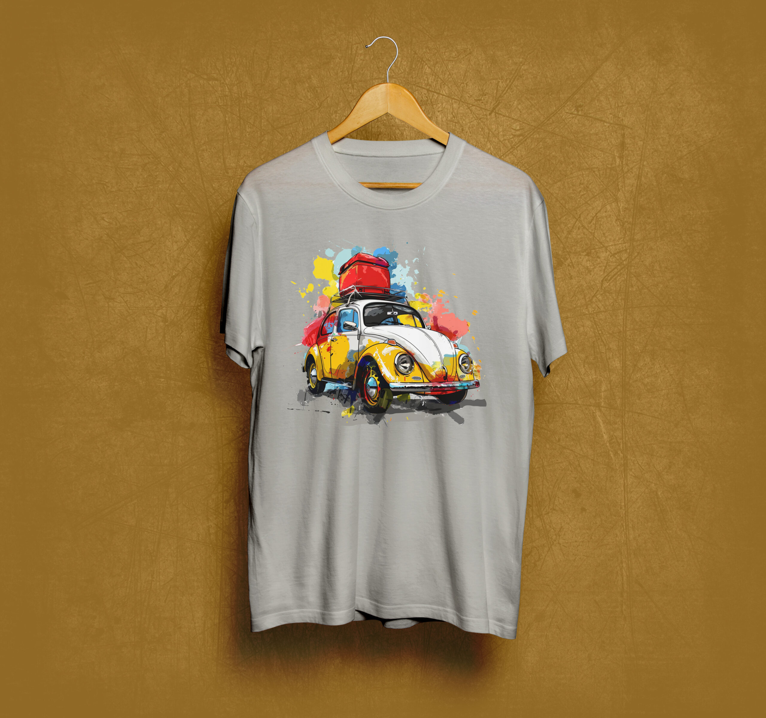 La camiseta muestra una ilustración detallada de un coche clásico, un modelo de los años 50 o 60.